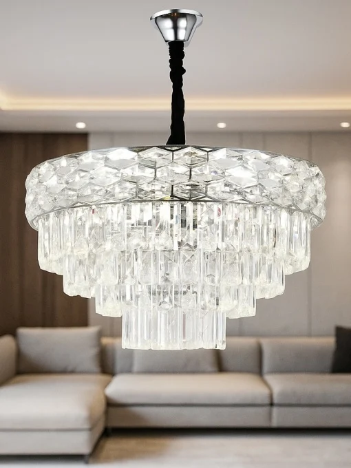 Candelabru  L72002-500 CH este alegerea ideală pentru cei care caută un corp de iluminat elegant și versatil. Cu un diametru de aproximativ 500 mm și finisaj cromat lucios, această piesă se integrează armonios în livinguri, dininguri sau spații de recepție, adăugând un plus de rafinament.