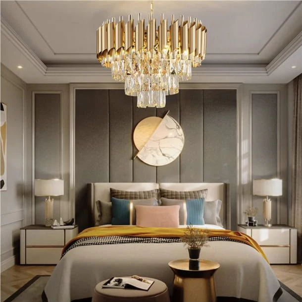 Eleganța nu ține cont de mărime! Modelul N9001/300FG aduce farmecul cristalelor și al finisajelor aurii-negre într-o versiune mini, ideală pentru spații mici dar cu personalitate.